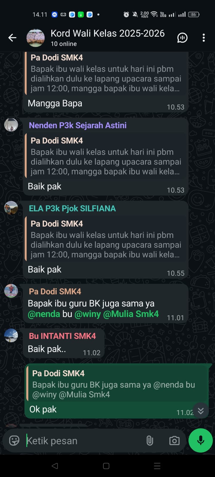 | 2026-02-10 | Nenden Astini | Selasa | Jam 4 | X TKI C | Izin Kepsek | Lihat |