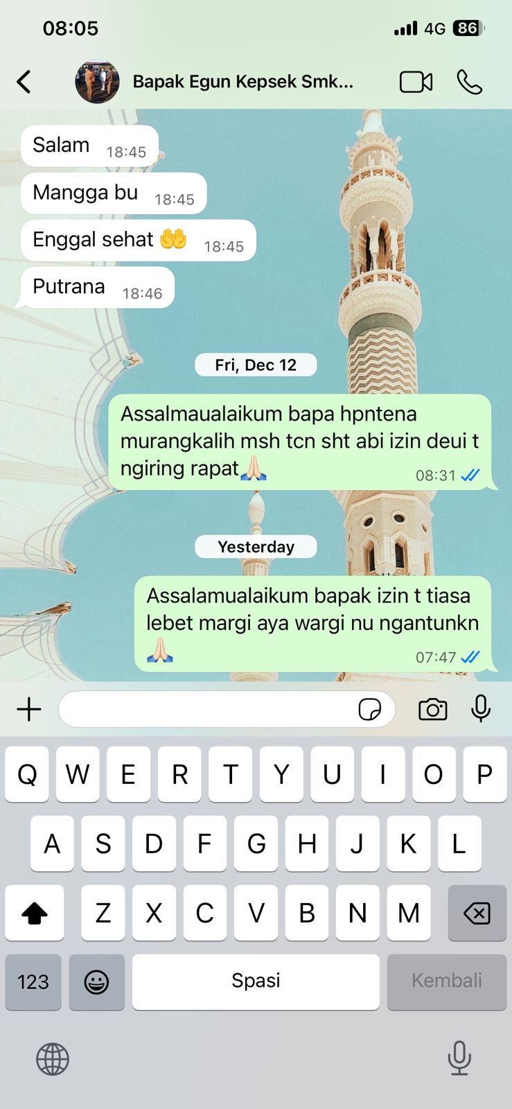 | 2026-02-05 | Eerste Maulidia Subagio | Kamis | Jam 1 | z tidak ada jam | Izin Kepsek | Lihat |