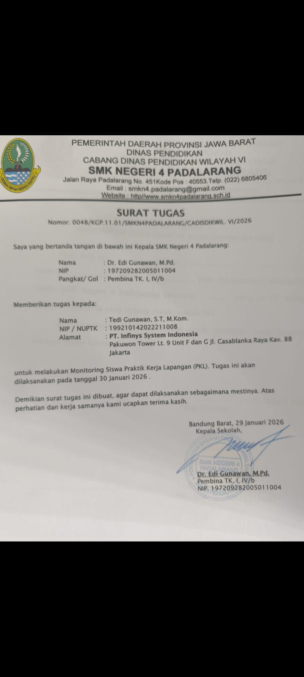 | 2026-02-12 | Rd. Adhi Indra Kurnia | Kamis | Jam 3 | X RPL B | Izin Kepsek | Lihat |